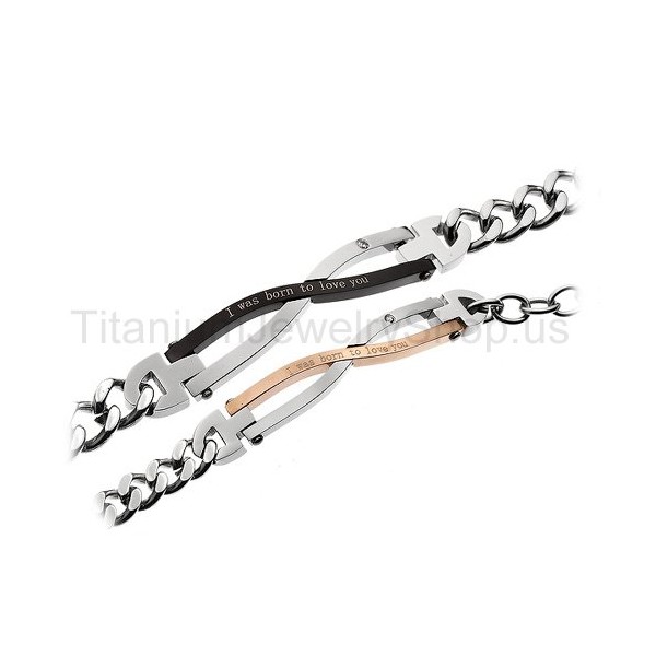 Metal: Titanium His size: 8 1/2 inches Long Her size: 7 1/2 inches Long