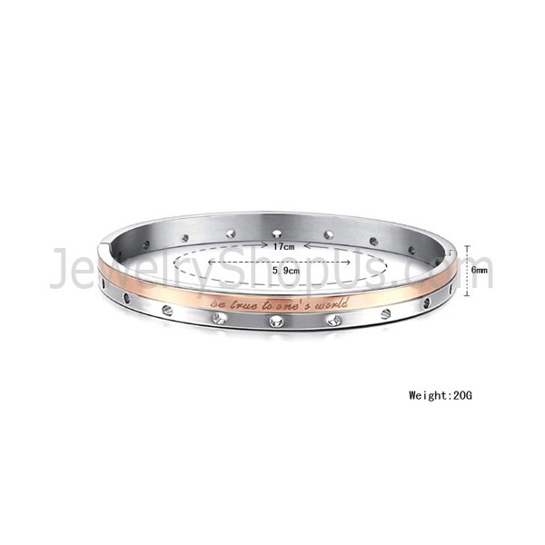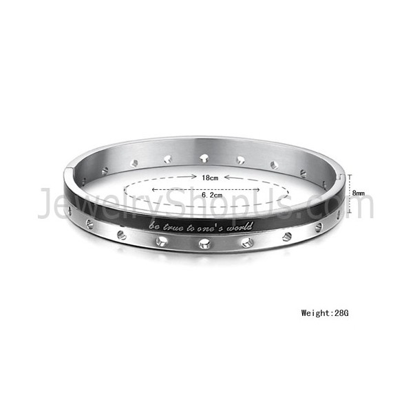 Tatanium Rose Gold and Black "Be True TO one's World" Couple Bangles with Circular holes C868
