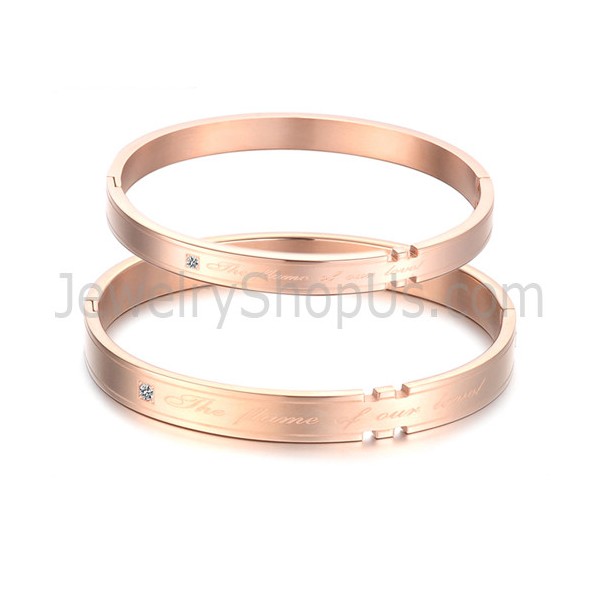 Tatanium Couple Bangles with Rhinestones (Black,Rose Gold) C731