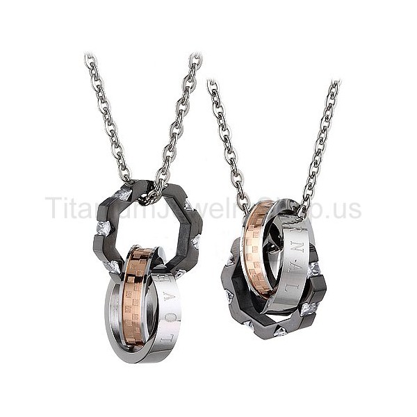 Metal: Titanium His size: 4/5" x 4/5" His size: 1" x 1" Chain: Titanium, 20"