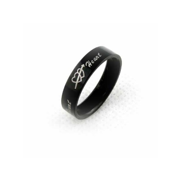One arrow piercing through two hearts Mens 6mm Black Titanium Ring