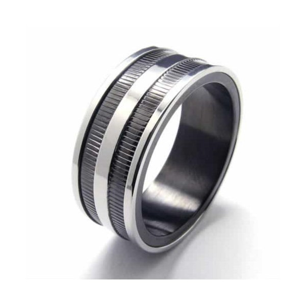 Two Grooved 8mm Black Titanium Ring