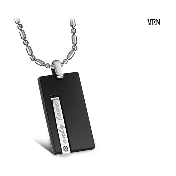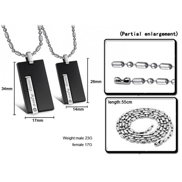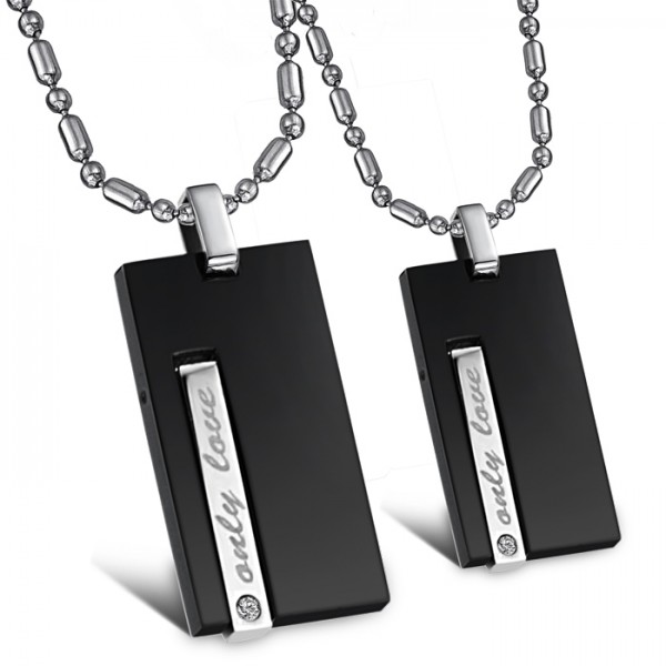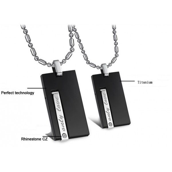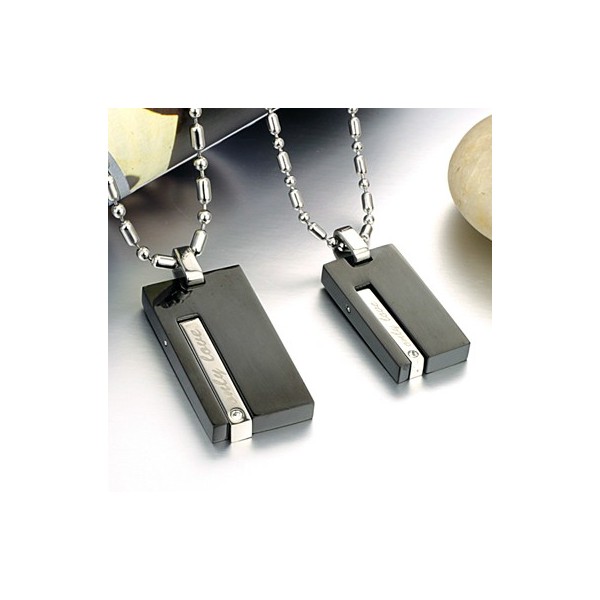 High Quality Black Titanium Necklace For Lovers With Diamond
