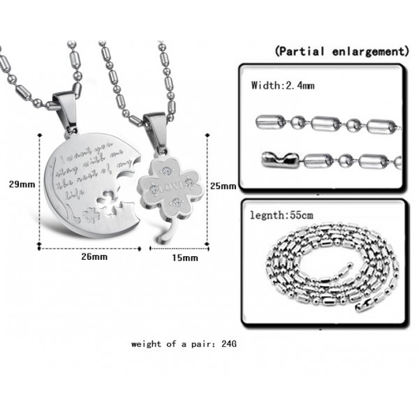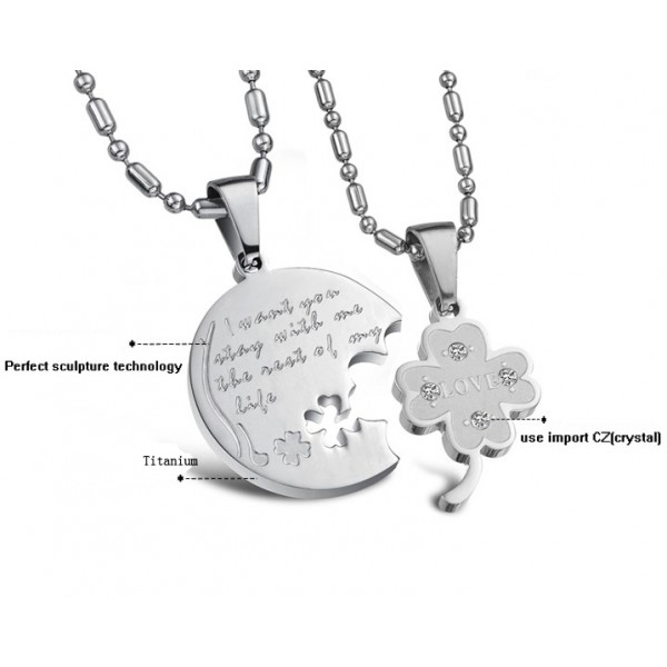 Superior Quality Clover Shape Titanium Necklace For Lovers With Rhinestone