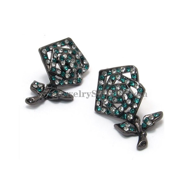 Beautiful Rose Alloy Earrings with Green Rhinestones