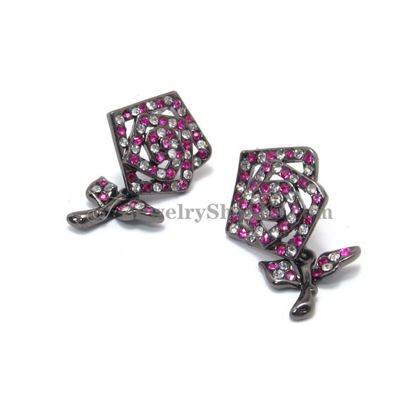 Beautiful Rose Alloy Earrings with Pink Rhinestones
