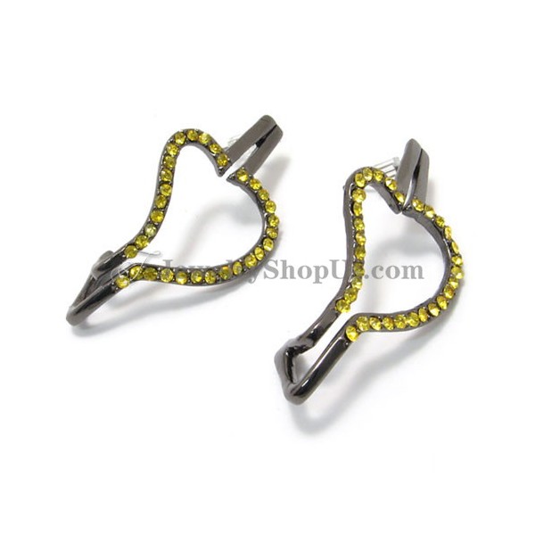 Gorgeous Black Alloy Earrings with Yellow Rhinestones