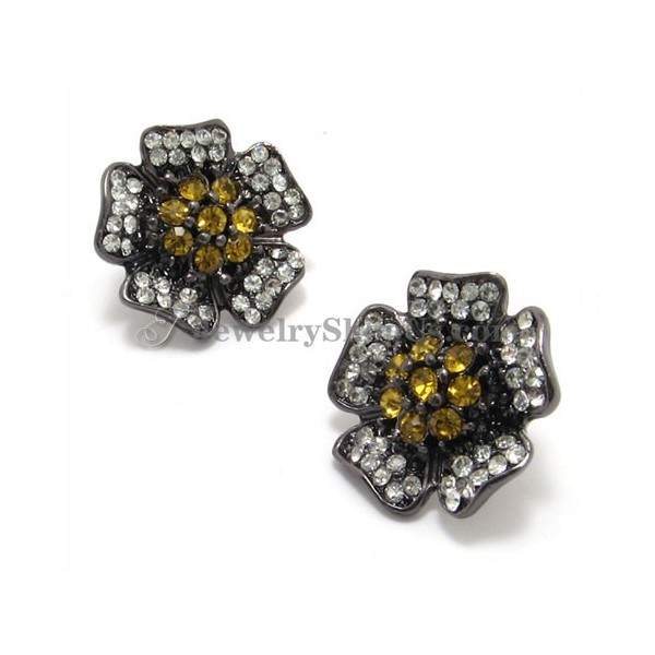 Fashion Flower Alloy Earrings with Yellow Rhinestones
