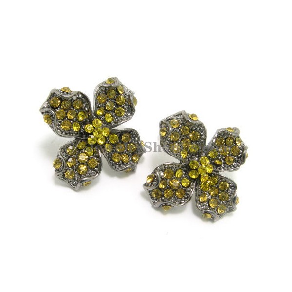 Elegant Alloy Flower Earrings with Yellow Rhinestones