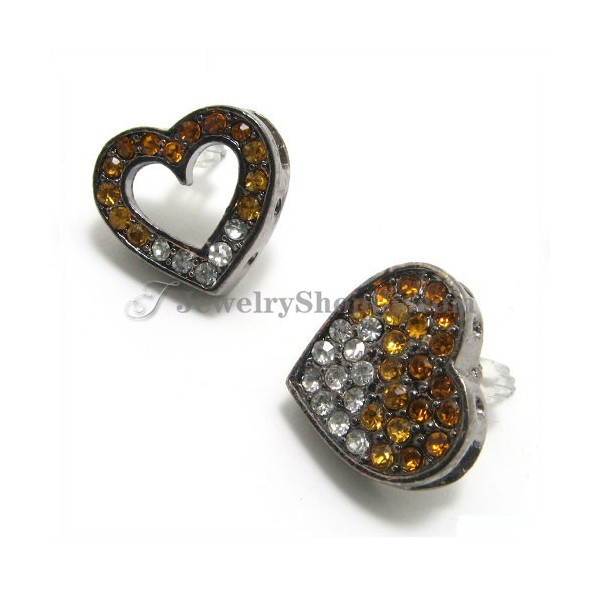 Fashion Heart Shape Alloy Earrings with Yellow and White Rhinestones