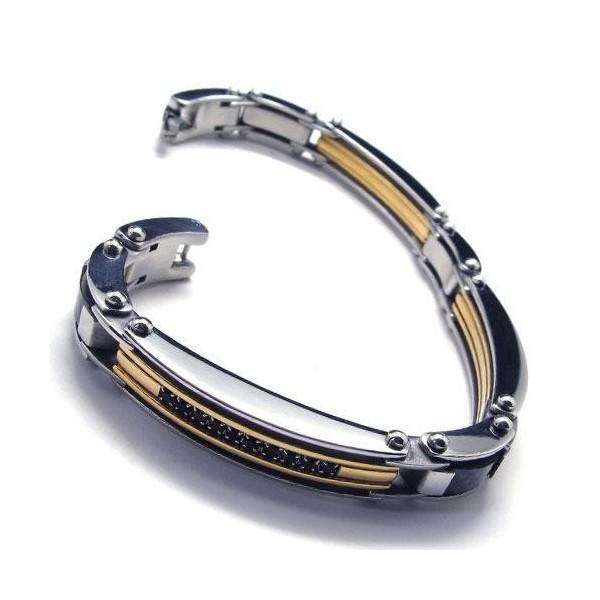 Men's Golden Silver Pure Titanium Charm Bracelet New 17640
