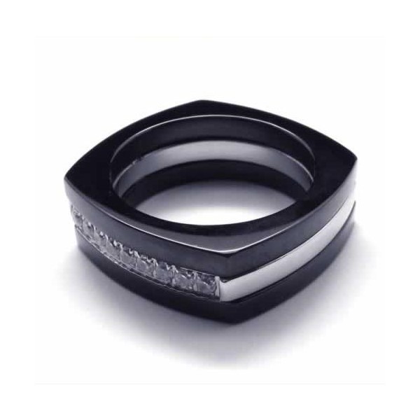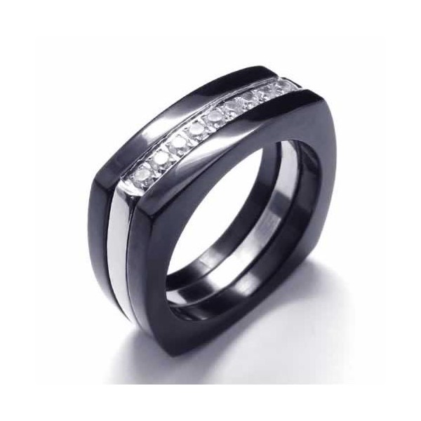 8mm Diamond Unisex Black Titanium Band Ring