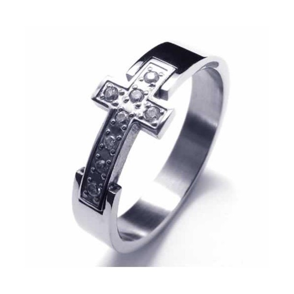 8mm Cross Diamond Unisex Titanium Band Ring 17764