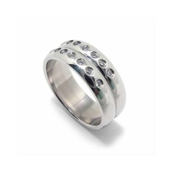 Diamond set 8mm Titanium Inlaid Court Band Ring