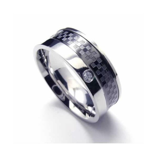 Diamond set 8mm Titanium Inlaid Court Band Ring