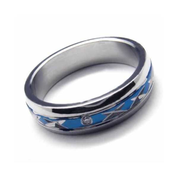 Diamond set 5mm Blue Titanium Inlaid Ring