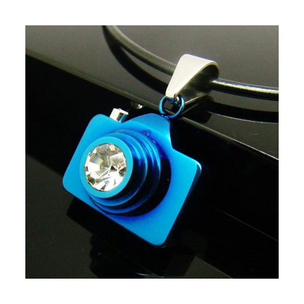 Man Blue Camera Pure Titanium Necklace Free Chain