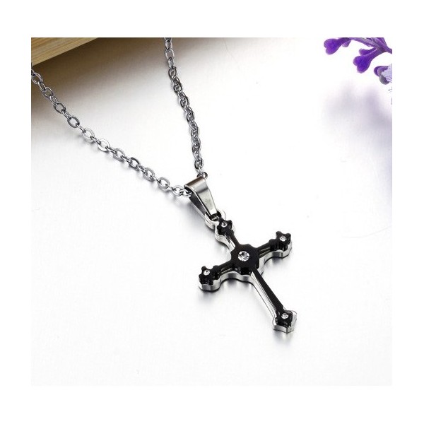 Excellent Quality Female Cross Titanium Necklace With Rhinestone