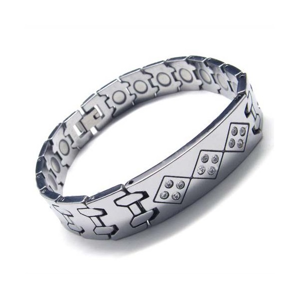 Tungsten Carbide 12mm Wide with Diamonds Mens Bracelet 15992