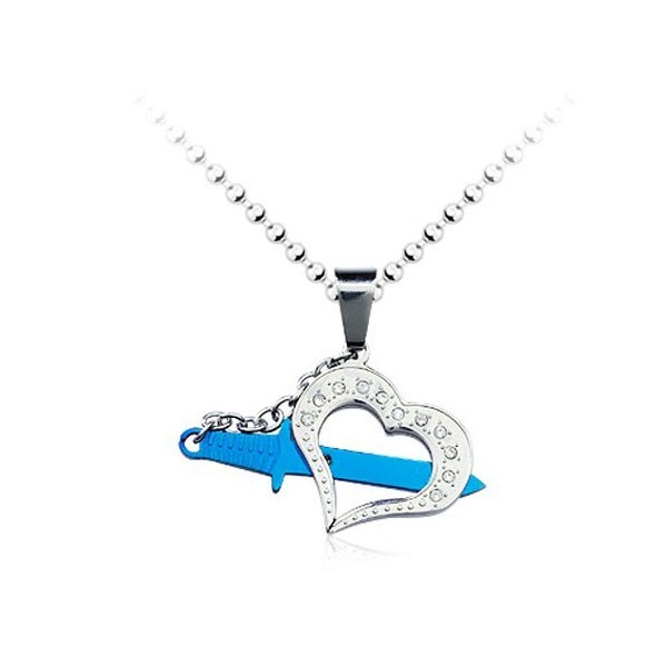 Stylish Mens Blue Titanium Love Pendant - Free Chain