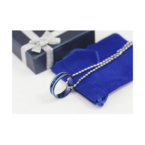 Simple Mens Blue Annular Titanium Pendant - Free Chain