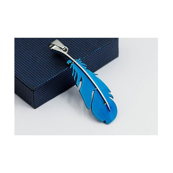 Popular Mens Blue Feather-Shaped Titanium Pendant - Free Chain