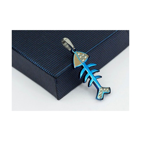 Cute Blue Fish Bone Titanium Pendant - Free Chain