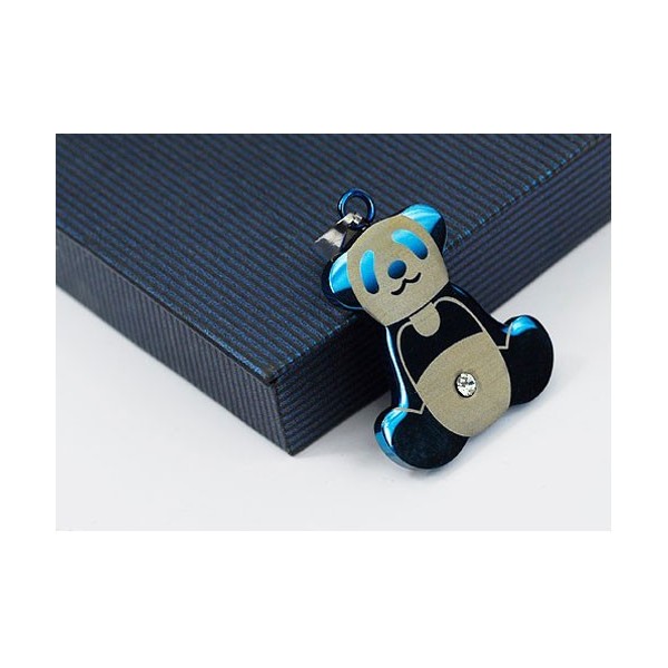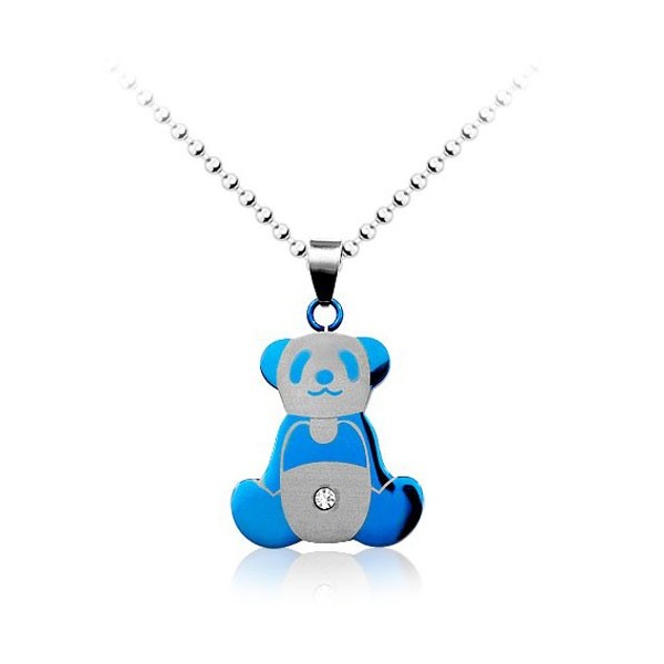 Cute Mens Blue Panda Titanium Pendant - Free Chain
