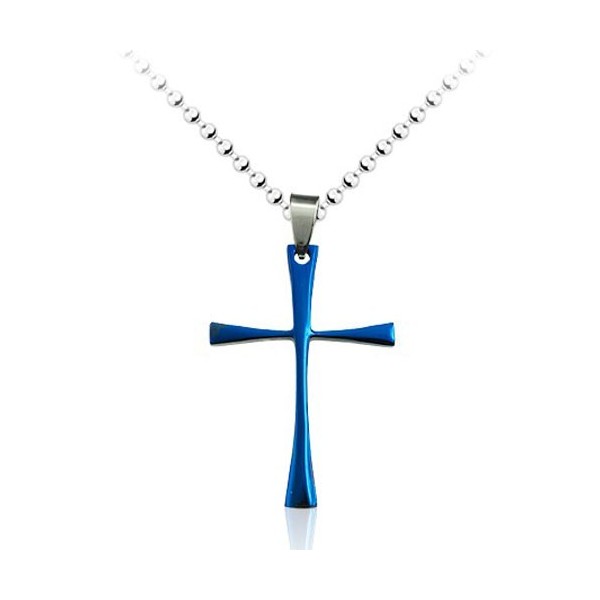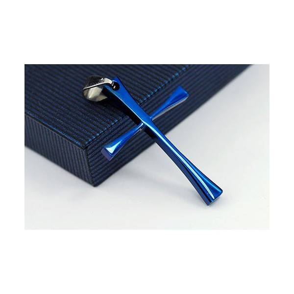 Mens Blue Simple Titanium Cross Pendant - Free Chain