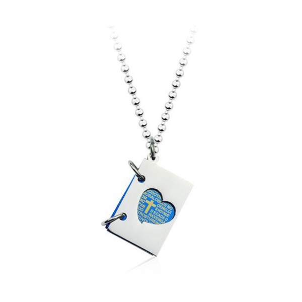 Openable Mens Bible and Cross Titanium Pendant - Free Chain